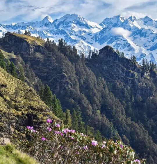 Main Attractions: Panar Bugyal, dense forests, Himalayan peaks (Nanda Devi, Trishul, Chaukhamba), Rudranath Temple in a cave